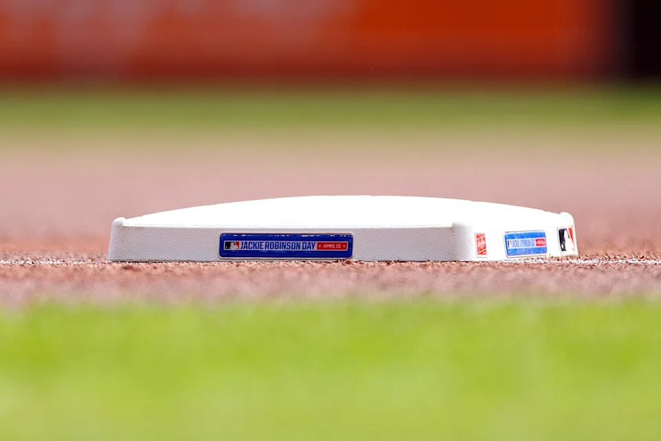 A view of third base in honor of Jackie Robinson Day prior to the start of the game between the Boston Red Sox and Minnesota Twins at Target Field on April 15, 2026, in Minneapolis, Minnesota.