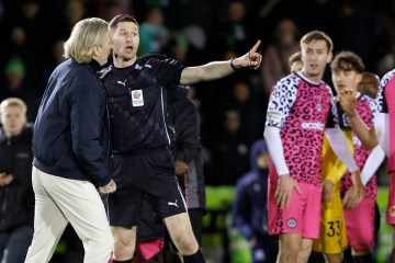 Robbie Savage ushered off pitch by referee and steward as mass brawl breaks out