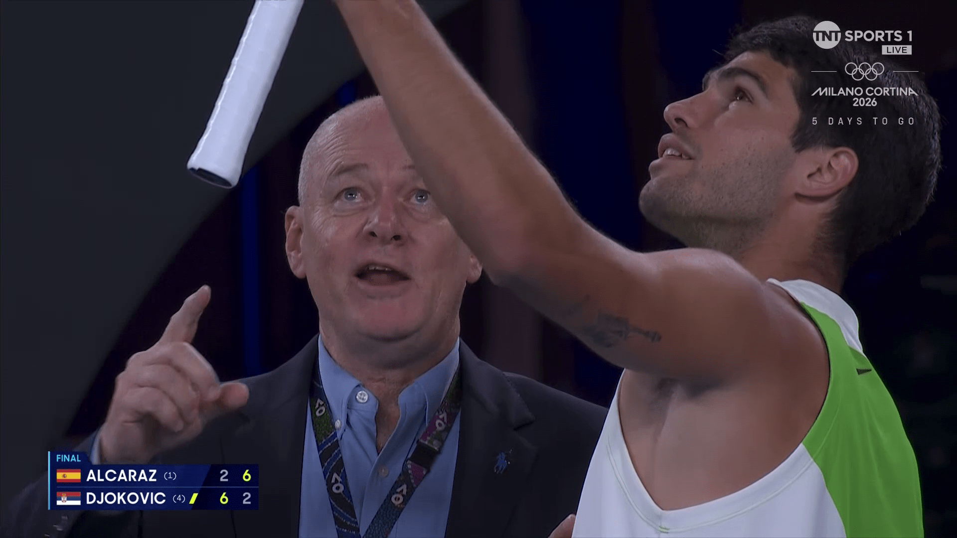 CARLOS ALCARAZ got into a heated row with the chair umpire and tournament referee over a mid-match controversy during the Australian Open final.