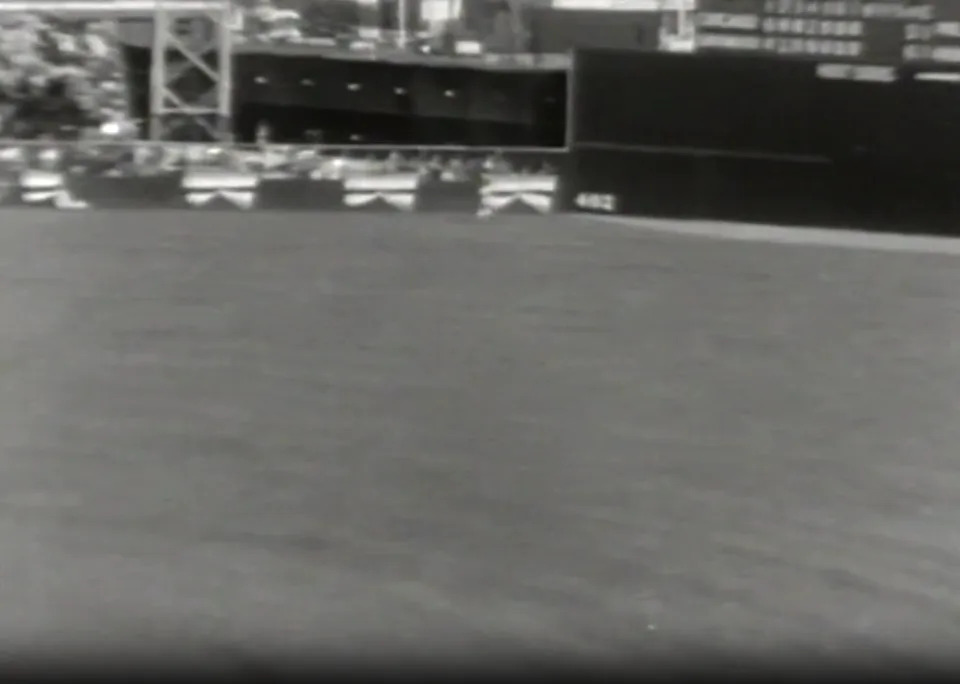 For this sleuthing exercise, we are concerned only with the first 14 seconds of the video. which shows Ernie hitting a home run in… now, what park is that exactly? It doesn’t look familiar at all, at first glance.