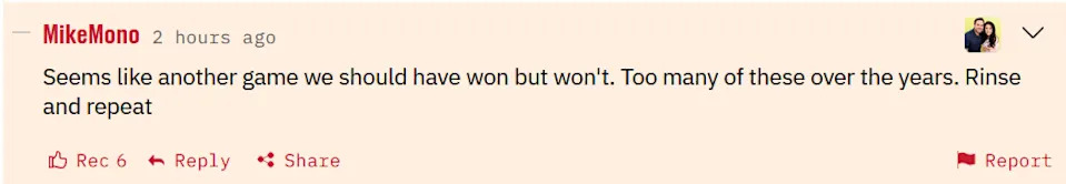 I don’t entirely agree with this one, though I do agree that this is another game that can and should be added to the 2026 list of games that we should have won but didn’t. Myself, I feel like this was a more unusual circumstance, and less of the same-old-same-old, which reminds me….