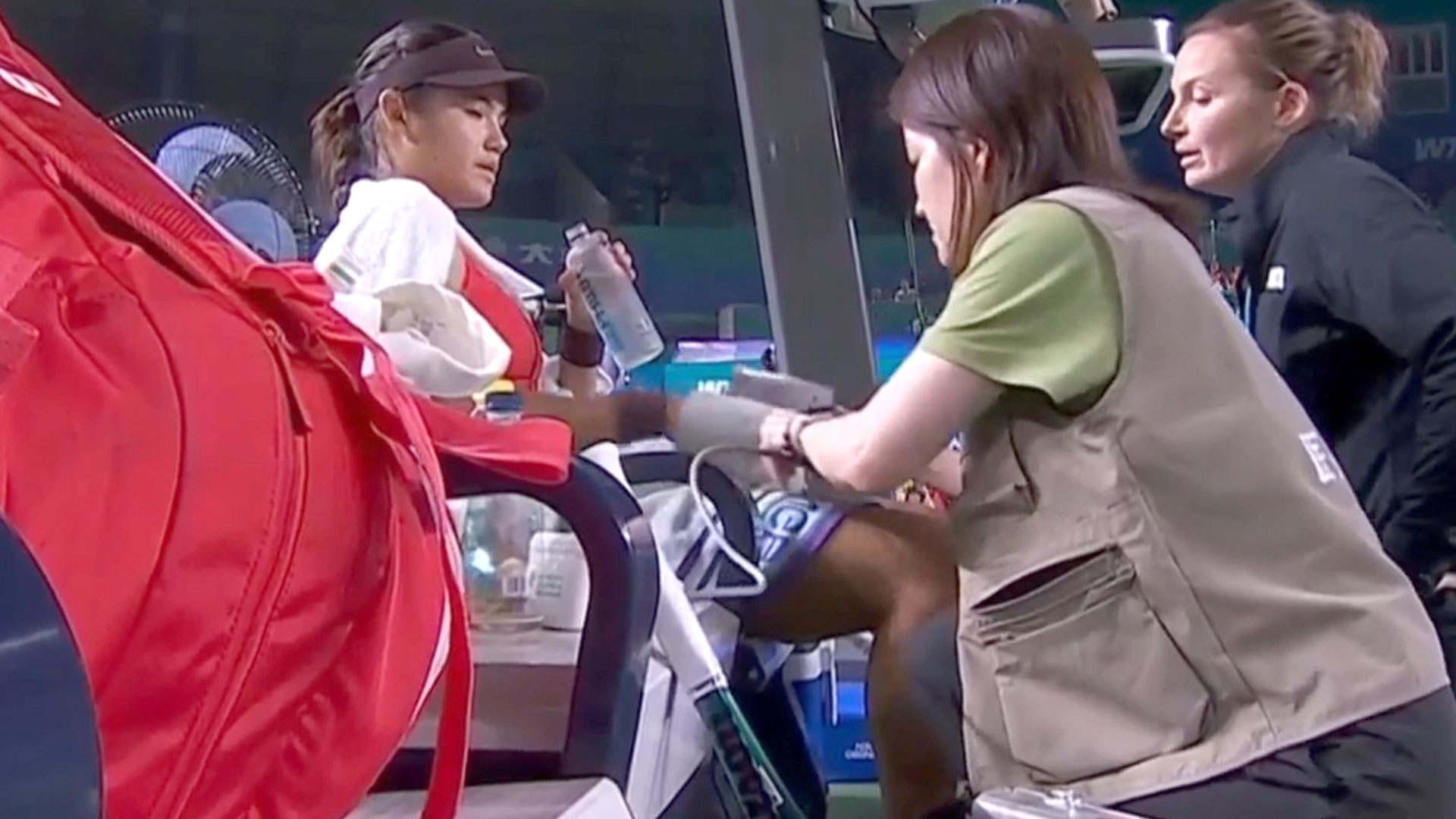 The physio appeared to take her pulse and blood pressure as the former US Open champion wrapped a towel around herself.