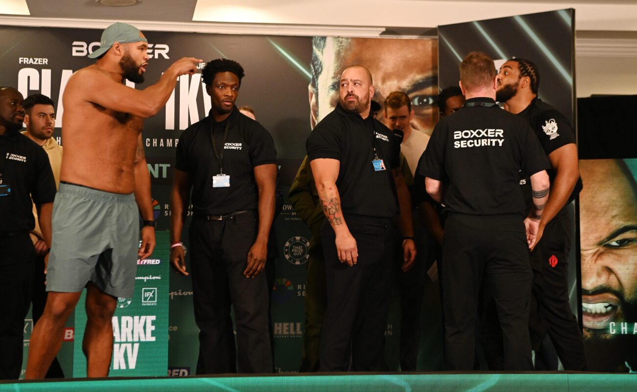 Tempers exploded in Derby as Frazer Clarke and Jeamie TKV nearly ripped through security during a heated weigh-in that set the tone for tomorrow night’s British Heavyweight Title fight. Both men locked in at career-hefty weights — Clarke at 270.2lb, TKV at 264.9lb — and neither bothered pretending they like each other. BBC Two’s cameras caught the shove, the shouting, and the security scramble. That alone will drag plenty of casuals into the broadcast.