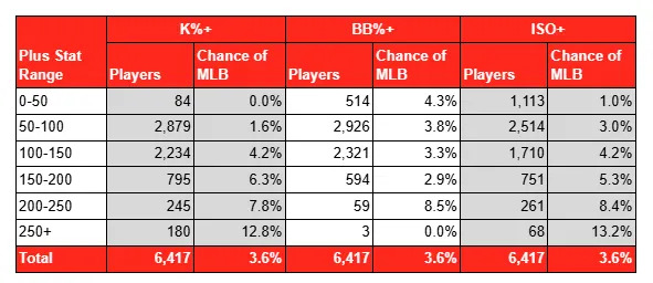 Here is a look at how the three plus statistics relate to chance of a debut: