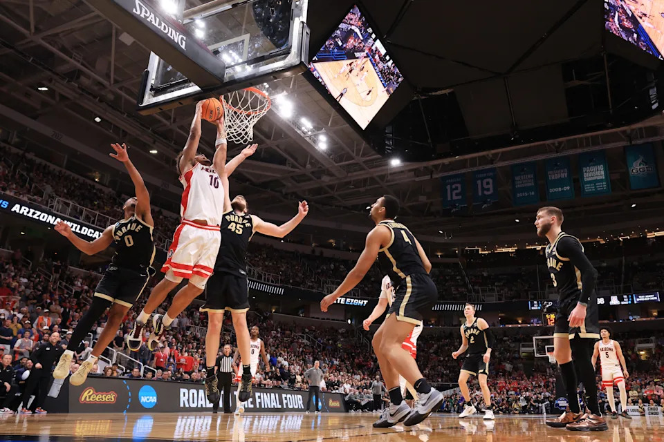 Purdue got a halftime lead thanks to seven 3-pointers, but the perimeter was closed in the second half. It missed its next seven attempts, only making one 3-pointer, coming with eight seconds left when Arizona was already celebrating.