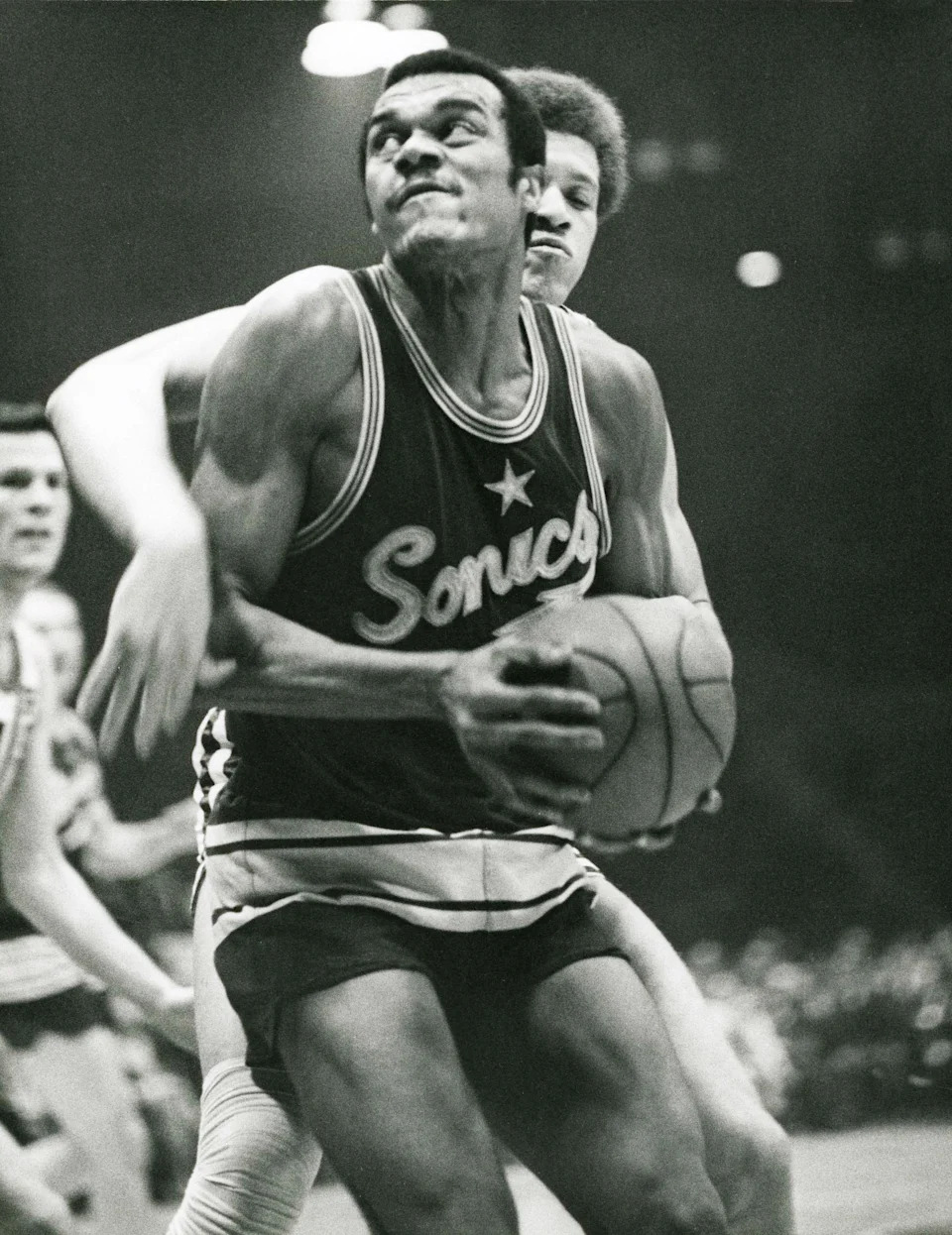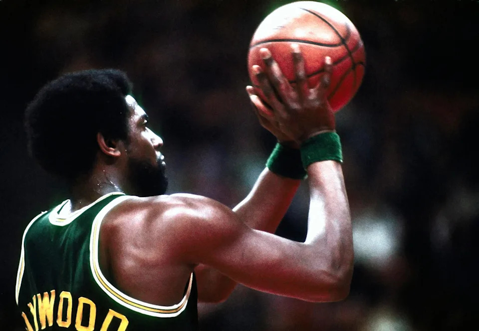 Seattle SuperSonics center Spencer Haywood in action against the New York Knicks at Madison Square Garden on March 9, 1971.