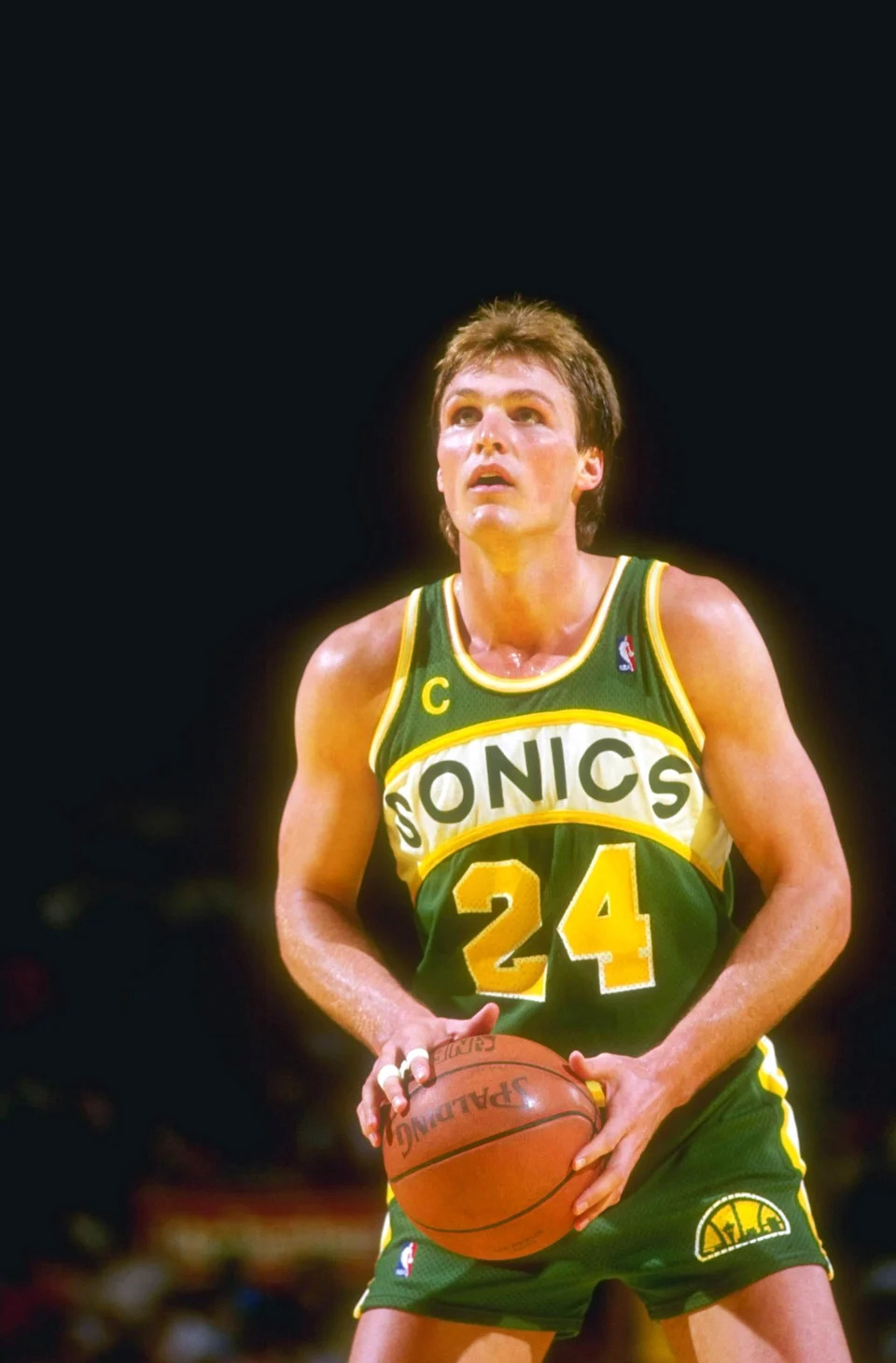 Forward Tom Chambers of the Seattle SuperSonics looks to shoot the ball during a game against the Los Angeles Lakers at the Great Western Forum in Inglewood, Calif. in 1988.