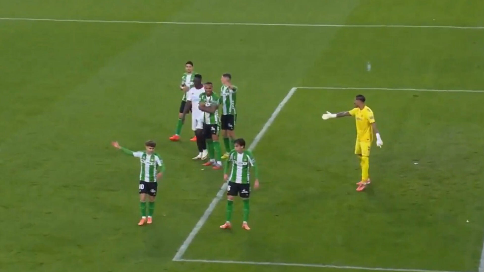 Betis defenders could be spotted trying to boot water bottles and other debris that littered the penalty area off the pitch so play could continue.