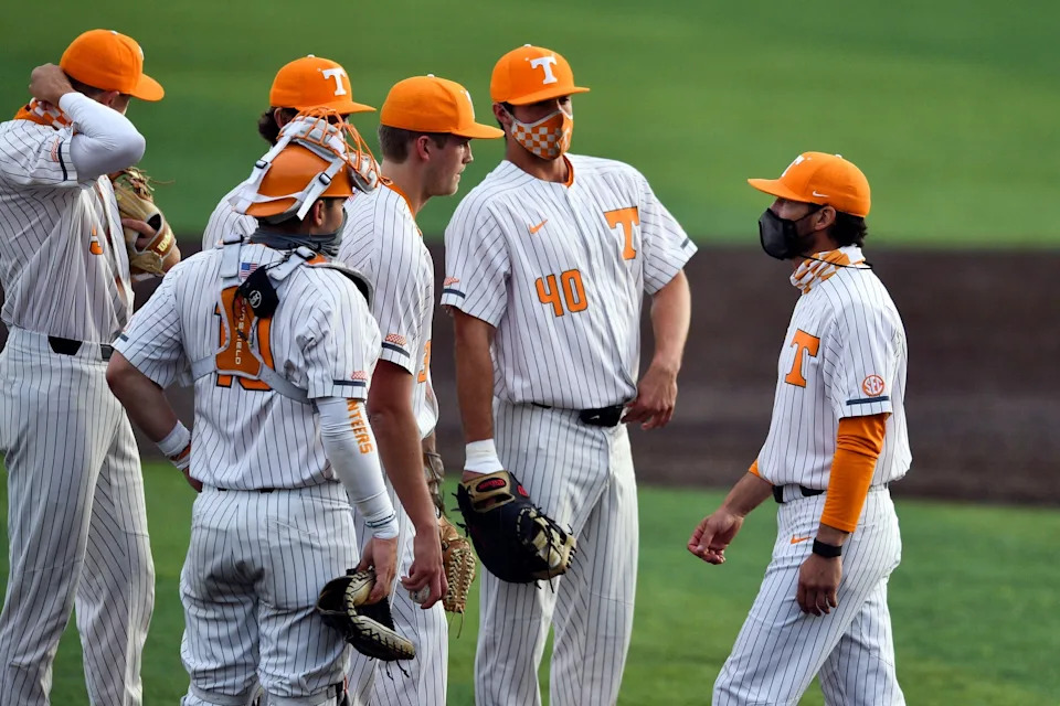 Tennessee baseball coach Tony Vitello approaches the mound during the college baseball game between Tennessee and Western Carolina on Tuesday, March 30, 2021 at Lindsey Nelson Stadium in Knoxville, Tennessee.