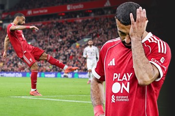 But Man Utd weathered a storm from the Reds and Bruno Fernandes’ brilliant assist allowed Harry Maguire to head home the winner.