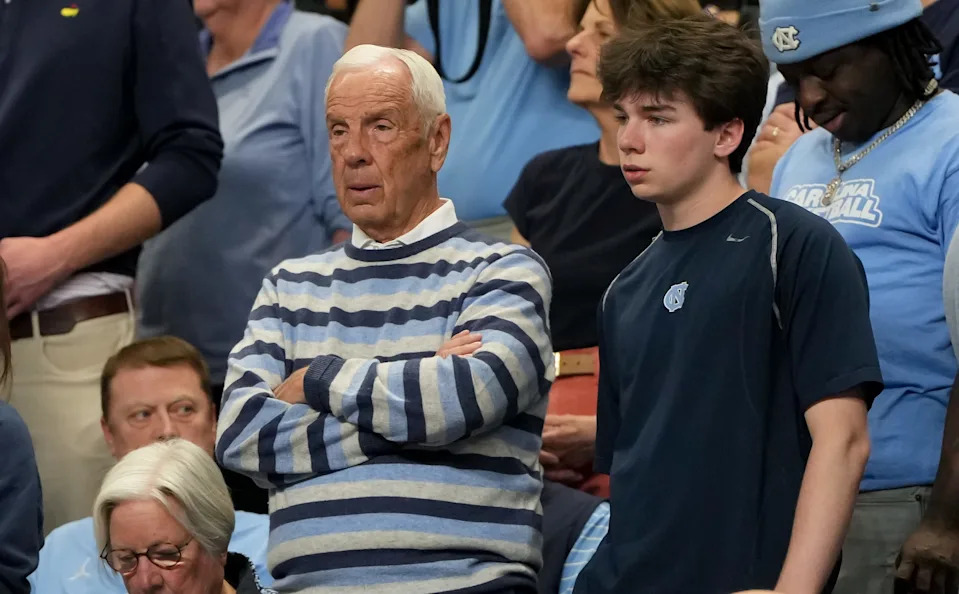 Former North Carolina Tar Heels head coach Roy Williams is seen in the crowd against the VCU Rams in the second half of a first round game of the men’s 2026 NCAA Tournament at Bon Secours Wellness Arena on Mar 19, 2026 in Greenville, SC.