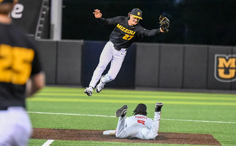 Right out of the blocks, Missouri’s offense sprinted out like Usain Bolt, starting with back-to-back singles from Woita and Durnin. A walk surrendered to Blaize Ward loaded the bases with nobody out, and Mateo Serna was hit by a pitch, which was not the most conventional way to put the first run of the game.