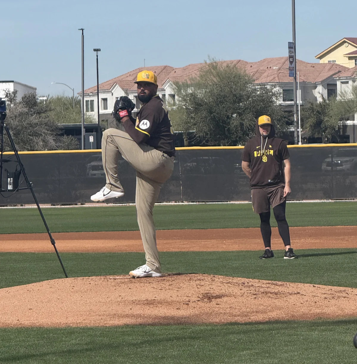 With the game being a 40-minute drive to Mesa, the practice fields saw early action and then bullpens for Joe Musgrove, Nick Pivetta, Walker Buehler and Miguel Mendez.