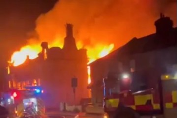 Moment huge blaze rips through historic club on town high street