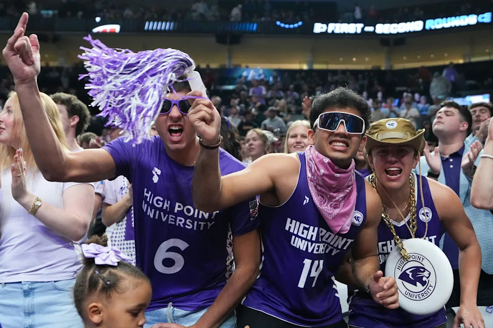 PORTLAND, OREGON – MARCH 19: High Point Panthers fans are seen before the game against the Wisconsin Badgers in the first round of the 2026 NCAA Men’s Basketball Tournament at Moda Center on March 19, 2026 in Portland, Oregon.