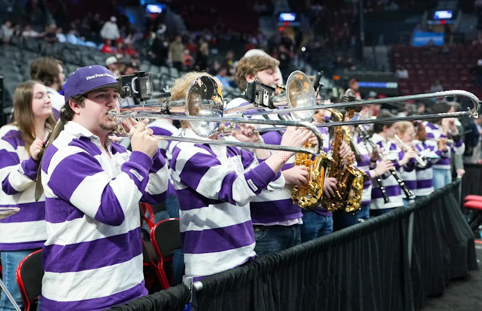 PORTLAND, OREGON – MARCH 19: The High Point Panthers Athletic Band perform before the game against the Wisconsin Badgers in the first round of the 2026 NCAA Men’s Basketball Tournament at Moda Center on March 19, 2026 in Portland, Oregon.