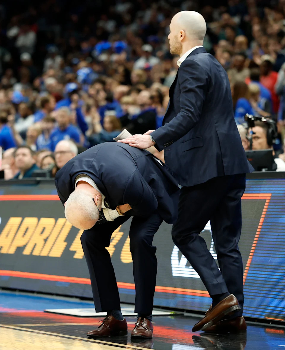 Head coach Dan Hurley of the UConn Huskies reacts during the second half of a game against the Duke Blue Devils in the Elite Eight of the 2026 NCAA Men’s Basketball Tournament at Capital One Arena on March 29, 2026 in Washington, DC.