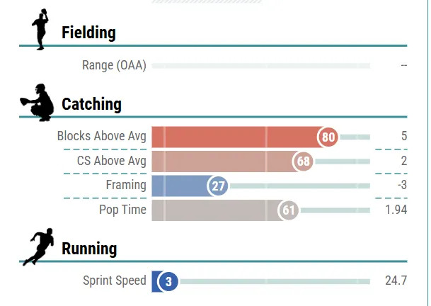 While it is likely the Blocks number for 2026 is negatively impacted by limited playing time, the Caught Stealing is something that Vazquez continues to do well in.